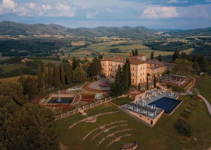 The Essere Spa, at the heart of the estate, offers therapeutic treatments inspired by Etruscan traditions along with a state-of-the-art fitness center. Guests can engage in activities such as truffle hunting, biking, and yoga sessions set amid the picturesque Tuscan hills. The property also features several event spaces, including an amphitheater and church for private gatherings.
