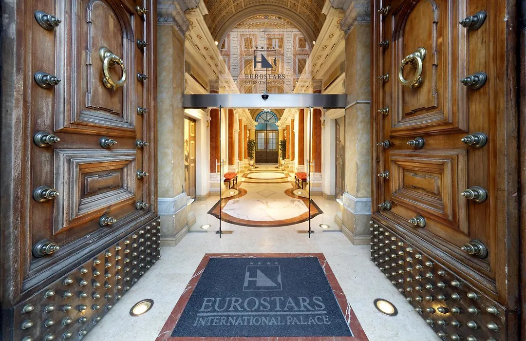 Exe International Palace, a 4-star Rome hotel with a score of 8.0/10 on Booking.com, showcases renaissance architecture and an elegant entrance with a gold-inlaid ceiling. The hotel offers modern amenities and a restaurant serving Italian and international cuisine, along with free WiFi access throughout the property.