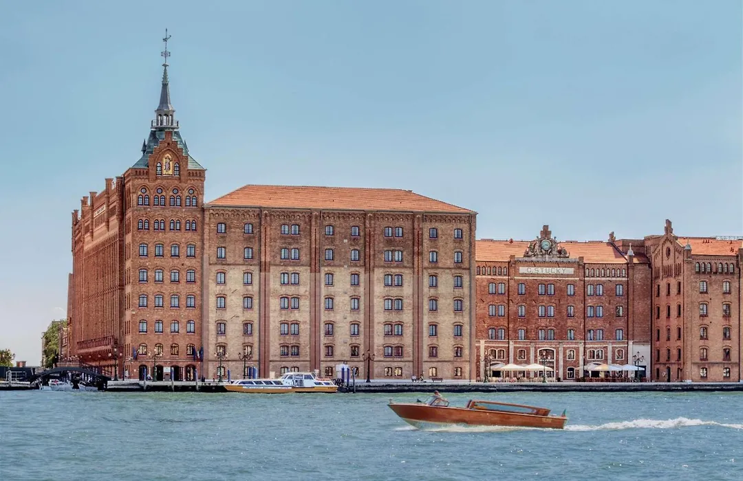 The Hilton Molino Stucky Venice features a 24-hour fitness center and the eforea Spa, where guests can relax with beauty treatments. The rooftop pool provides a unique view of Venice, enhancing the leisure experience. The hotel's unique design highlights its industrial past with elements like wooden beams and steel columns.