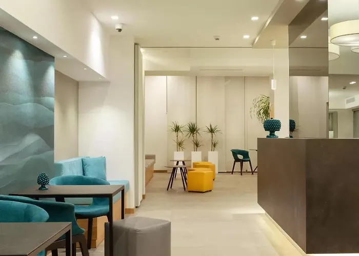 Albatros Beach Hotel is a 4-star Letojanni hotel featuring a contemporary Mediterranean-style building. Guests can enjoy various amenities, including a beach area and a 24-hour American bar. The hotel has a high rating of 9.2 on Booking.com.
