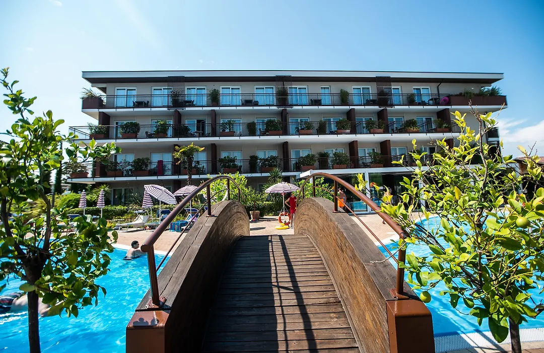 Hotel Bella Italia offers 4-star accommodations with a range of amenities including a 2400 m² swimming pool complex, children's playgrounds, and underground parking. The hotel is situated within Camping Bella Italia, delivering family-friendly services and activities. Rated 7.7/10 on Booking.com, it is an excellent destination for families seeking comfort and an engaging stay.