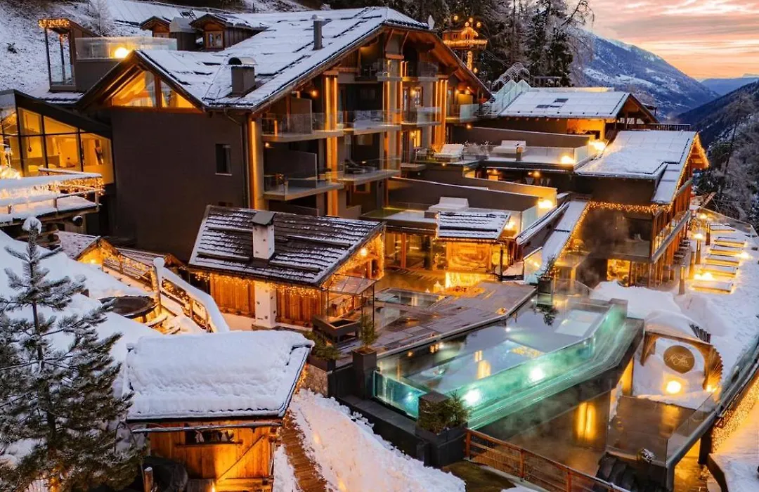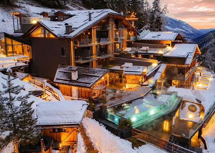 Hotel Chalet Al Foss - Adults Only, a 5-star property rated 9.5/10 on Booking.com, offers an exemplary wellness experience alongside modern alpine design. Guests can enjoy amenities such as an infinity pool, hot tubs, and a wellness center in a serene landscape characterized by majestic mountains and lush woods.