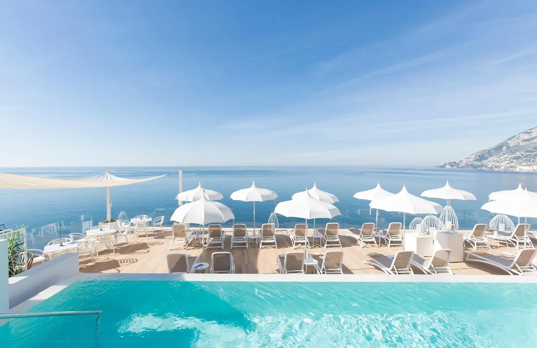The hotel has a private beach, wellness treatments, and opportunities for hiking and water sports. Guests can partake in guided tours, local wine tastings, and explore the scenic Amalfi Coast.