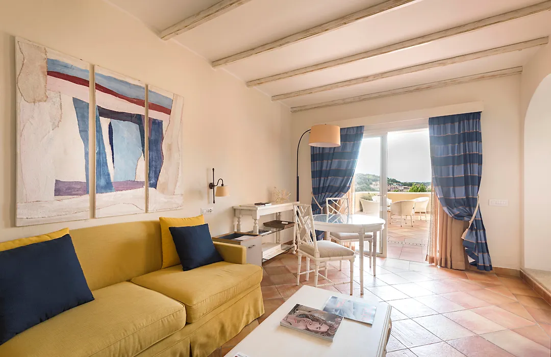 Rooms at Cph | Pevero Hotel include spacious suites with features such as private balconies that offer panoramic views of the Gulf of Pevero. The Presidential Suite is equipped with a private pool and luxury amenities, while the Luxury Suites offer terraces with sea views and Jacuzzis.
