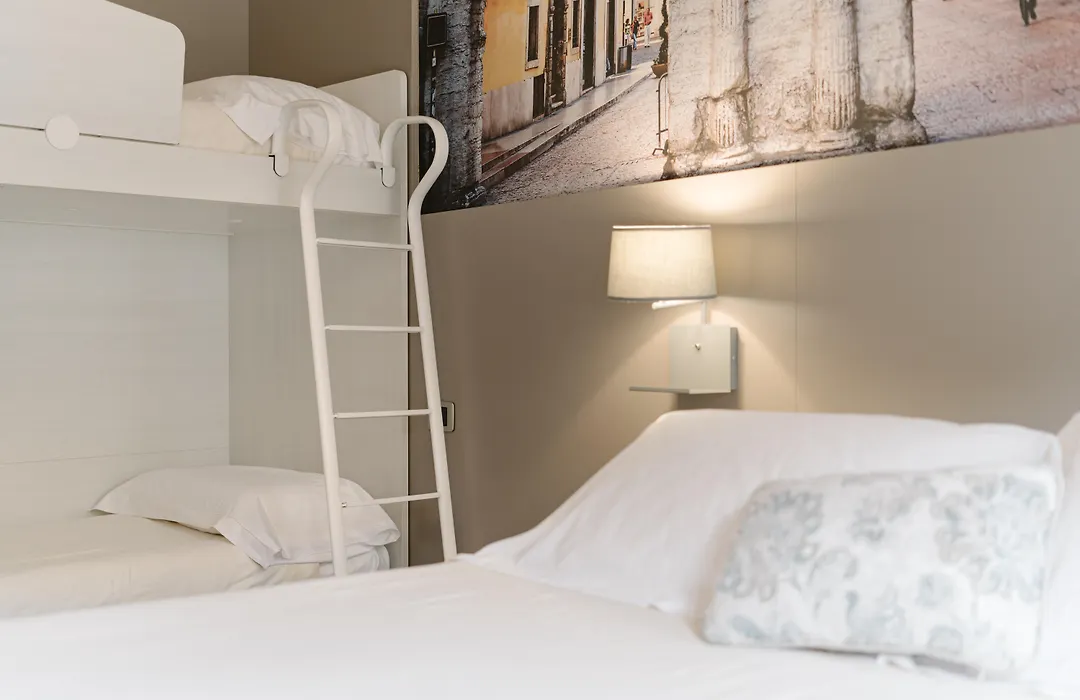 Hotel Giulietta e Romeo ***S offers various accommodations including double rooms, family rooms, and suites, featuring amenities such as air conditioning, free WiFi, and optional private balconies. Each room is designed for modern convenience, ensuring guests can work comfortably with laptop-friendly workspaces.