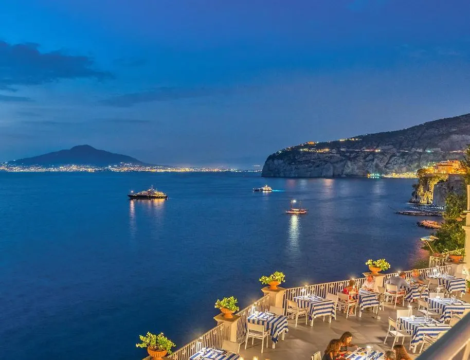 Grand Hotel Riviera features a panoramic view of the Gulf of Naples, offering a private beach and multiple dining options. This 4-star luxury hotel is equipped with beautiful gardens and elegant spaces, making it suitable for various events including weddings.