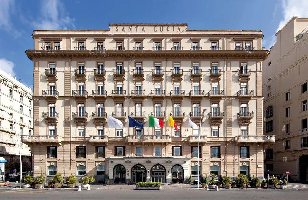 Grand Hotel Santa Lucia, a 4-star Naples hotel with an 8.8/10 rating on Booking.com, features stunning views of the Bay of Naples and the Castel dell'Ovo. Amenities include a stylish restaurant, meeting facilities, and an elegant ambiance reflecting the Neapolitan Belle Epoque.