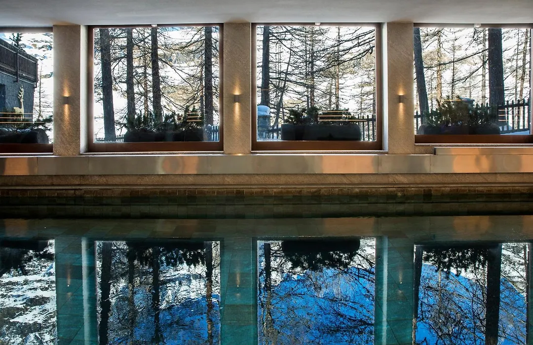 Dining at the hotel's 5-star restaurant La Chandelle offers a blend of traditional and modern culinary experiences, utilizing ingredients from the Aosta Valley and Piedmont. Guests can enjoy gourmet dishes in an elegant atmosphere with views of the Matterhorn and the surrounding larch woods.