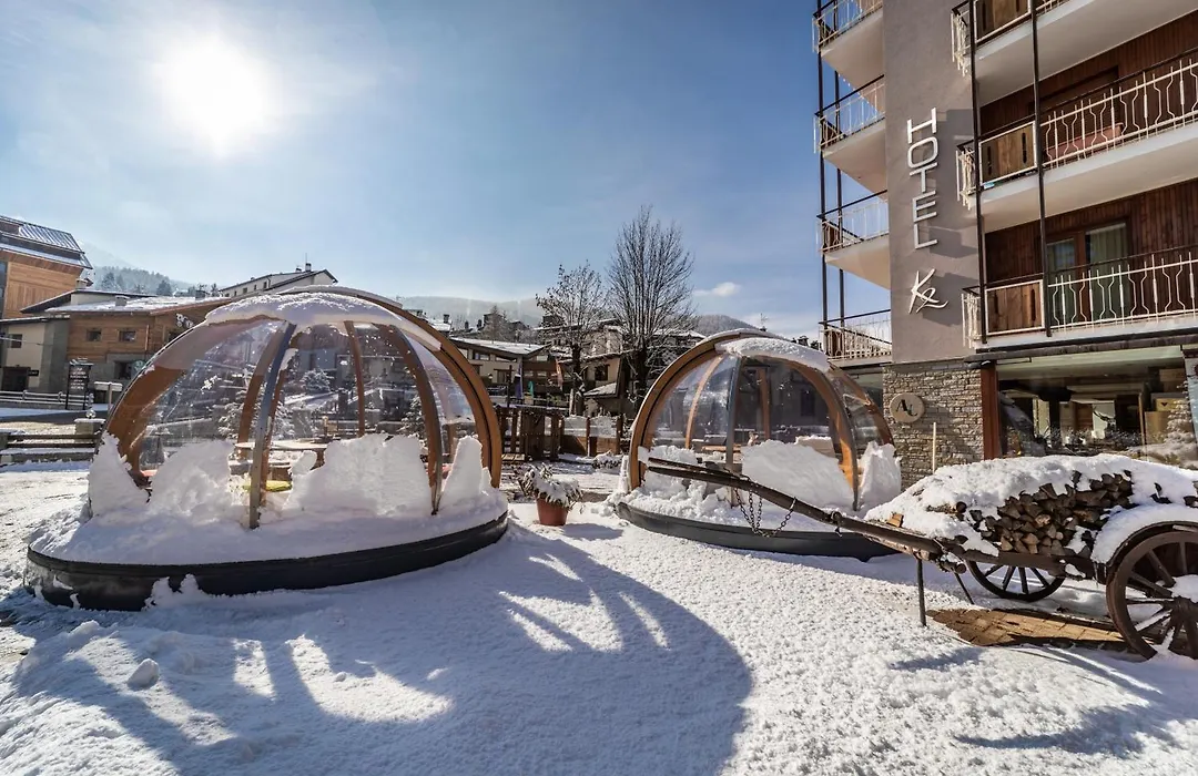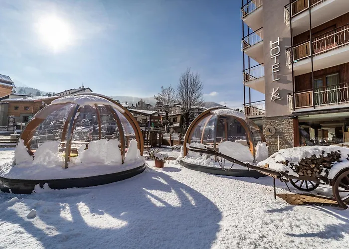 Hotel K2, a recently renovated 3-star establishment, is located 200 meters from the ski lifts of the Vialattea ski area. The hotel offers 23 rooms, including suites and family accommodations, along with amenities such as a cozy Lounge Bar and a restaurant serving regional cuisine.