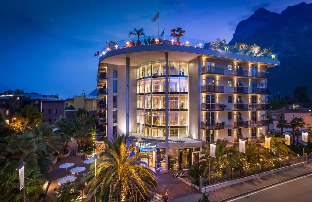 Hotel Kristal Palace - Tonelli Hotels - Adult Friendly, a 4-star superior design hotel, features a rooftop swimming pool with stunning panoramic views of Lake Garda and mountains. The hotel provides a gourmet restaurant, spa facilities, and is situated in the picturesque Riva del Garda area.