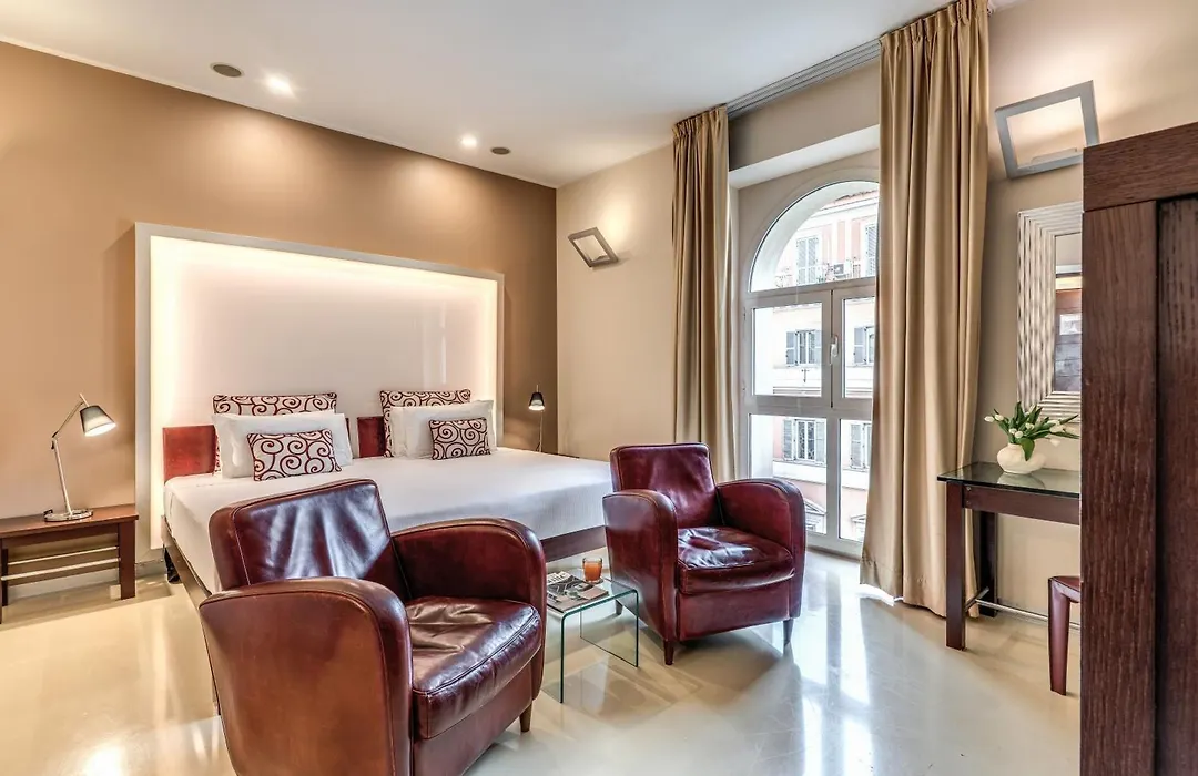 La Griffe Hotel Roma features 123 rooms across 10 floors, offering a selection from single rooms to spacious suites. Each room is equipped with air conditioning, a flat-screen LCD TV, free WiFi, and a mini-bar filled with Italian products. Bathrooms include hydro-massage showers or bathtubs and toiletries by Etro.