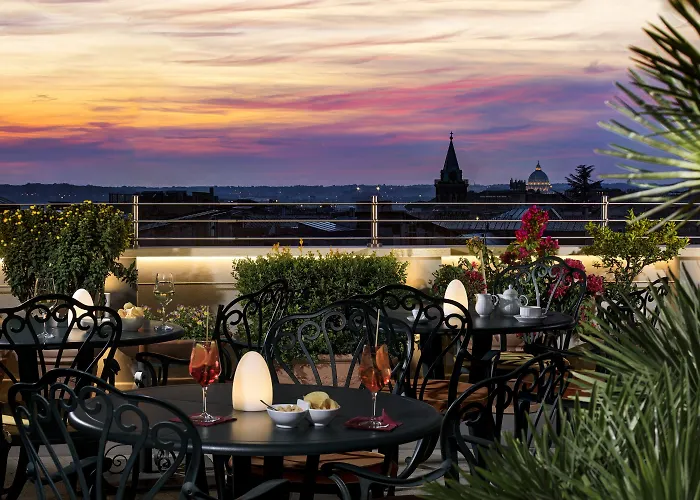 Marcella Royal Hotel - Rooftop Garden is a 4-star hotel in the Sallustiano district, offering comfortable accommodations with modern amenities. The hotel features a rooftop terrace, cocktail bar, and provides access to a professional service team for personalized guest experiences.