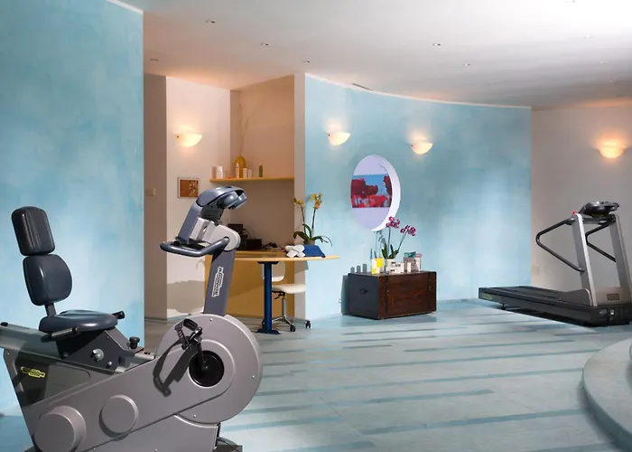 Hotel Maximilian offers leisure activities including mountain biking, hiking, and sailing, with a boat dock and private moorings available. A wellness area features a sauna, Turkish bath, and beauty treatments, along with a fitness center.