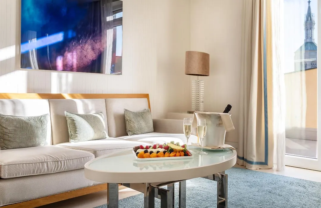 Rooms at Melia Genova include contemporary designs and exceptional amenities. The accommodations range from Classic Rooms to luxurious suites with private terraces overlooking city views, featuring large walk-in closets and comfortable furnishings.