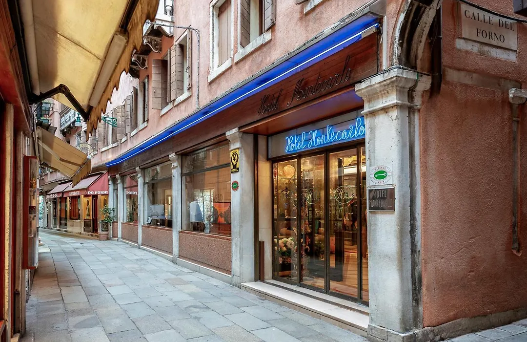 Hotel Montecarlo, rated 8.8/10 on Booking.com, offers 3-star accommodations in Venice with comfortable rooms and a buffet breakfast served in a Venetian-style dining room. Additional amenities include a reading room with free Wi-Fi and a free fleet of bikes for exploring the area.