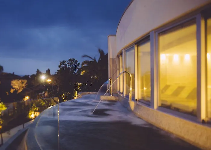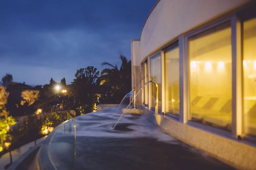 The hotel's Natural Spa features hydrotherapies, a Finnish sauna, and various relaxing treatments like Ayurvedic and draining massages. The spa provides a tranquil environment within olive trees and a relaxation area with herbal teas.