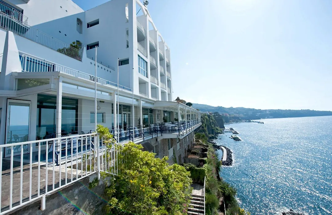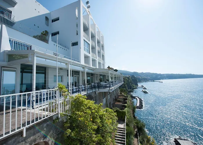 Parco Dei Principi is a 5-star design hotel, embodying the architectural creativity of Gio Ponti. Notable amenities include a salt-water swimming pool, on-site dining options, and a fitness center. The hotel is situated on a cliff with views of the Bay of Naples.