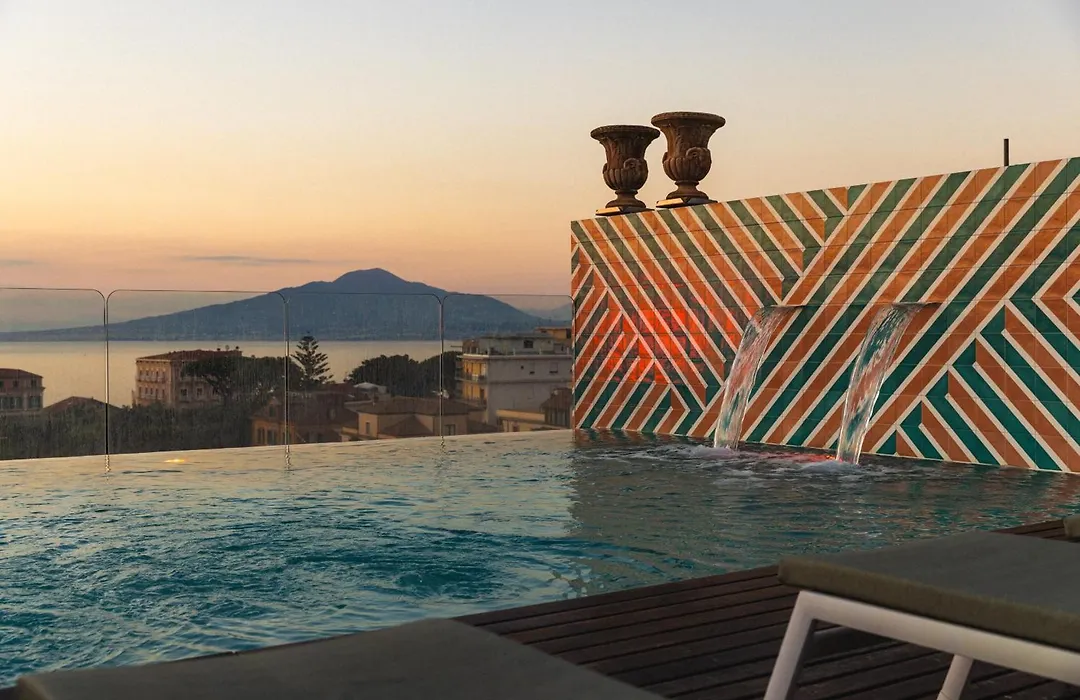 Hotel Plaza stands as a 4-star design hotel in the heart of Sorrento, showcasing contemporary architecture and ecological materials. Guests can enjoy amenities such as a panoramic rooftop infinity pool with views of the Bay of Naples and Mount Vesuvius, a fitness room equipped with TECHNOGYM machines, and an on-site café.