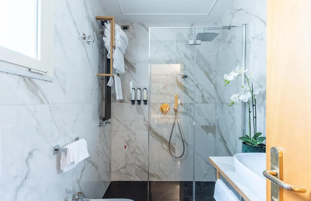 All 41 rooms at Hotel Raffaello are equipped with air conditioning, LCD satellite TV, a minibar, and personalized pillow menu. Family rooms accommodate up to four guests, while other options include Economy Rooms and Superior Rooms with terraces for city views.