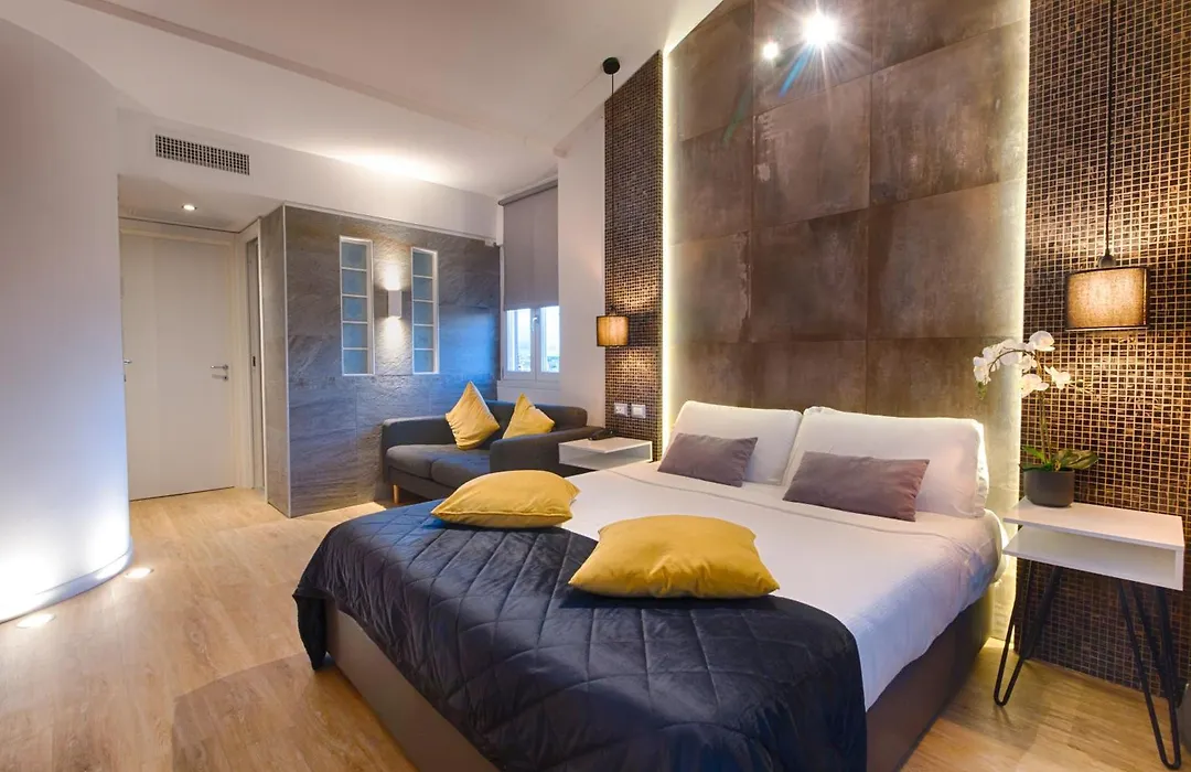 The hotel serves a varied continental breakfast each morning. A cozy lounge bar is available for relaxing after a day of sightseeing, and the rooftop terrace offers stunning views of the sunset.