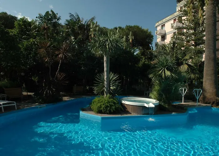Reginna Palace Hotel features a beautifully landscaped garden with lounge chairs and a shaded solarium, providing a relaxing environment for guests. The hotel is located close to several local landmarks, including the Castello di San Nicola de Thoro-Plano and Parrocchia di Santa Maria a Mare.