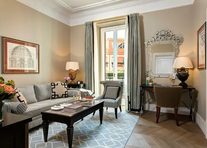 Rocco Forte Hotel De La Ville, a 5-star luxury hotel, boasts a rooftop bar with panoramic views and an exquisite Sicilian-inspired spa. It offers unique dining experiences crafted by Chef Fulvio Pierangelini and accommodations filled with contemporary furniture and sumptuous fabrics. The hotel is situated atop the Spanish Steps in a vibrant area known for its high-end shopping and cultural landmarks.