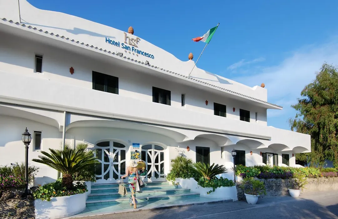 Hotel San Francesco, a 4-star property rated 8.2/10 on Booking.com, features an outdoor pool and spa services amid Mediterranean vegetation on one of Forio's scenic tree-lined streets. This beach hotel offers a steam room, free shuttle service, and dining options that include meals prepared with fresh ingredients from the hotel's garden.