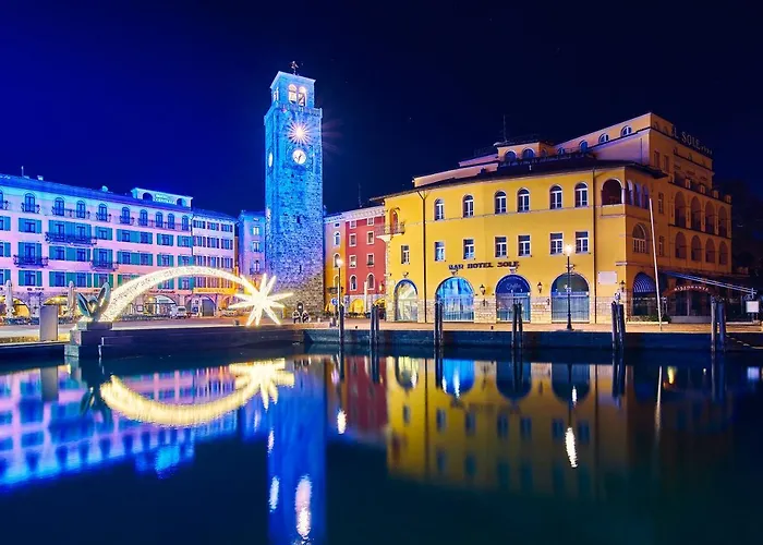 Leisure activities at Hotel Sole include access to a private spa area featuring a sauna and whirlpool, as well as opportunities for sailing, climbing, and walking along scenic trails such as the famous Ponale trail. Guests can enjoy bike rides along Lake Garda or stroll through the historic old town, where summer concerts are held.