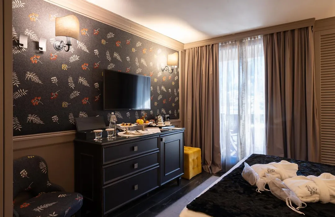 Rooms at Hotel Spinale feature elegant wood panelling, luxurious draperies, and modern amenities including LCD TVs, minibars, and complimentary Wi-Fi. Spacious suites provide balconies with views, while family-friendly accommodations can transform a living area into a children's room.