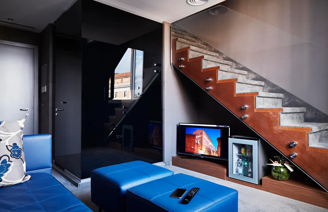 Hotel The Building is a 4-star Rome hotel located in a historic building that maintains original architectural features. The hotel features a spa, interactive satellite TV, and a spacious lobby with a piano bar. It is strategically set near key transport links, providing easy access to the city's attractions.