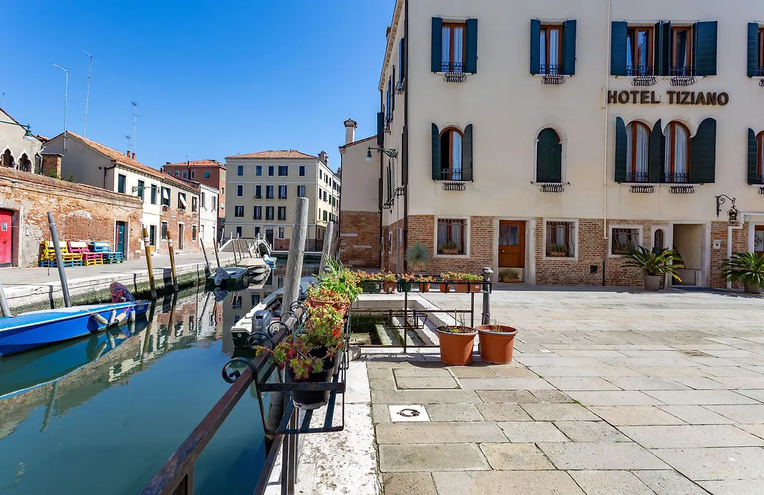 Hotel Tiziano, a 3-star Venice hotel with an 8.8/10 rating on Booking.com, features elegantly furnished rooms and apartments with traditional Venetian decor. Guests can enjoy a breakfast service and benefit from the convenient location in the Dorsoduro district, known for its cultural attractions.