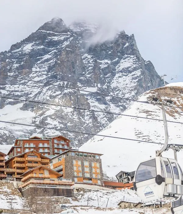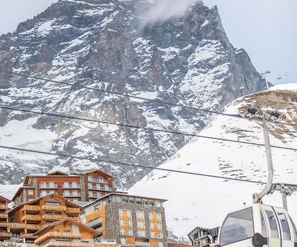 White Angel Hotel is a sophisticated 4-star hotel in Breuil-Cervinia, featuring ski-in/ski-out access along with a comprehensive wellness spa. The hotel provides modern amenities and superior dining options, all under the impressive backdrop of the Matterhorn.