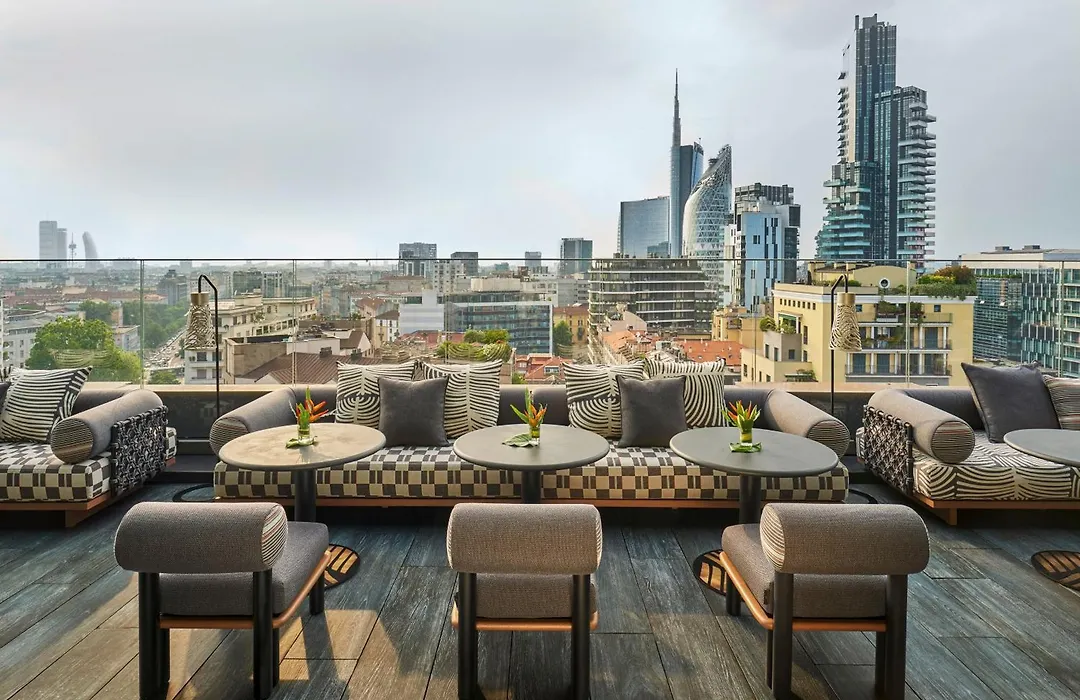 Me Milan Il Duca, a 5-star hotel with an 8.7/10 rating on Booking.com, features modern design inspired by Milan's fashion culture, outstanding dining options, and a prominent rooftop bar. The hotel is recognized for its premium service and sophisticated ambiance.