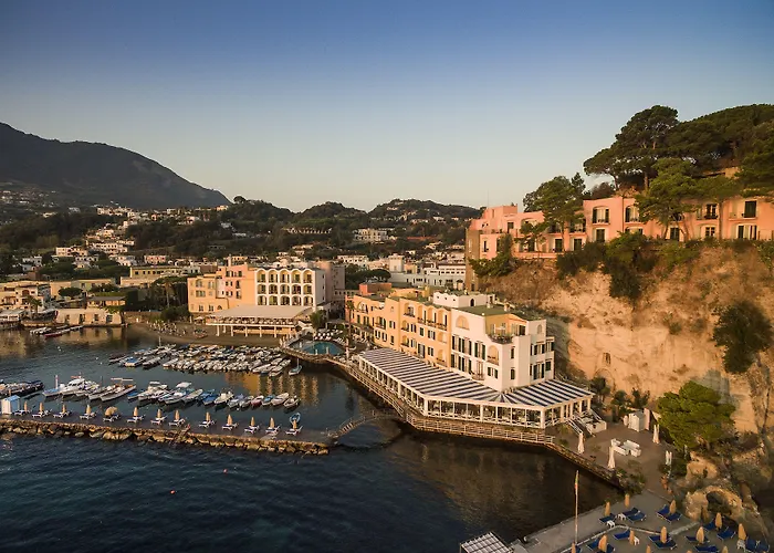 Regina Isabella-Resort Spa Restaurant, a 5-star hotel rated 9.5/10 on Booking.com, offers an extensive wellness facility, four swimming pools, and a private beach for exclusive guest use. It features a Michelin-starred restaurant and multiple dining options, making it suitable for various culinary experiences.