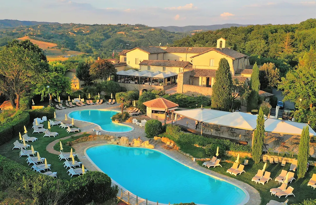 Leisure facilities include a seasonal outdoor swimming pool surrounded by gardens, perfect for relaxation during warmer months. Guests can also enjoy tennis courts and wellness services, while the resort's location allows for excursions in the picturesque Umbria region, including visits to nearby historical sites.