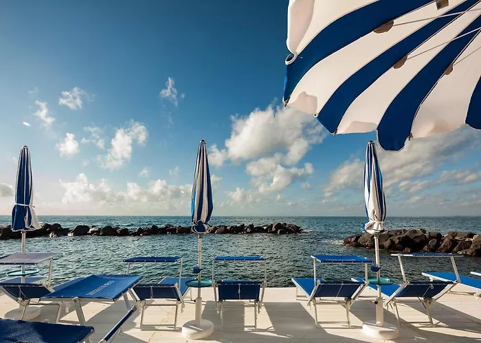 Ischia Blu Resort, rated 9.7/10, offers 4-star accommodations with direct access to a private sandy beach and an infinity pool. The resort features multiple apartment types, each equipped with a terrace or balcony for the guests' enjoyment.