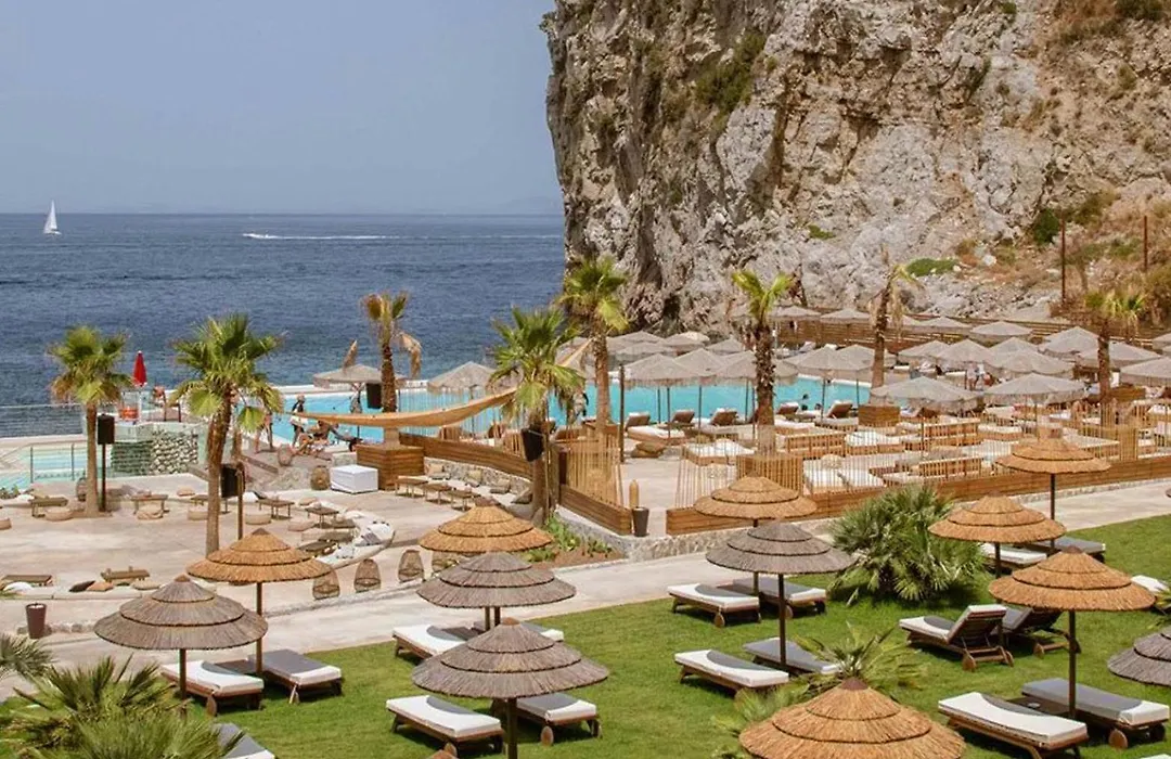 Maya Beach Resort offers adults-only accommodations with a restaurant, bar, and private beach area, achieving an 8.3/10 rating on Booking.com. The 5-star Massa Lubrense hotel features stunning panoramic views of the Mediterranean Sea and the island of Capri.