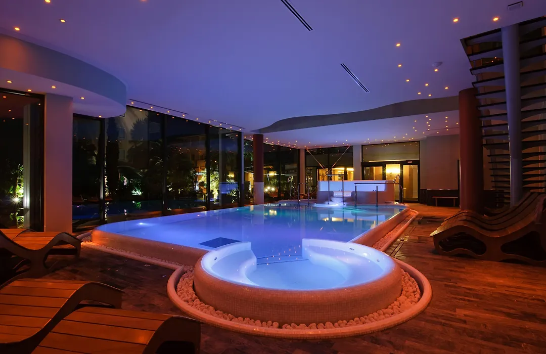Villa Nicolli Romantic Spa Resort - Adults Only features a large spa, indoor salted pool, and breathtaking views of Lake Garda. This 4-star Riva del Garda hotel offers wellness services and gourmet dining options for adult guests seeking tranquility and culinary delights.