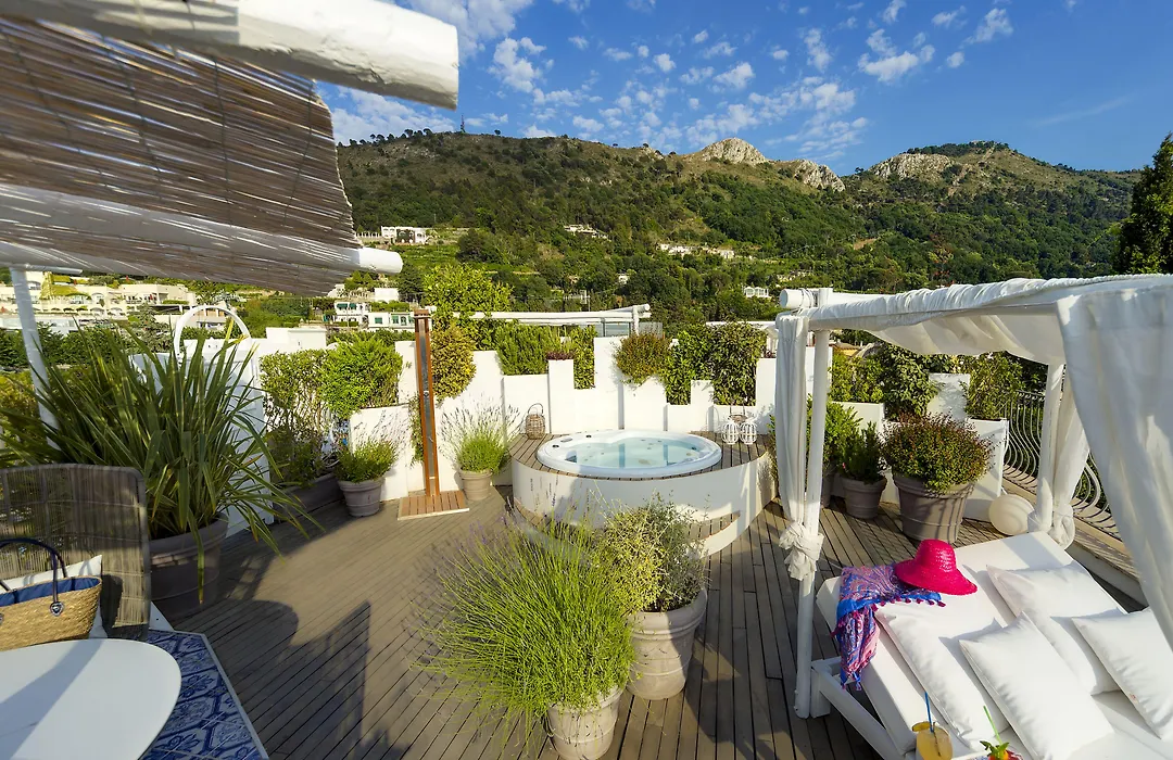 Hotel Villa Blu Capri (Adults Only) is a 5-star hotel known for its serene environment and modern amenities. Guests can enjoy a rooftop sea-view terrace featuring a hot tub and furnished areas. This Anacapri (Isola di Capri) hotel holds an 8.0/10 rating on Booking.com.