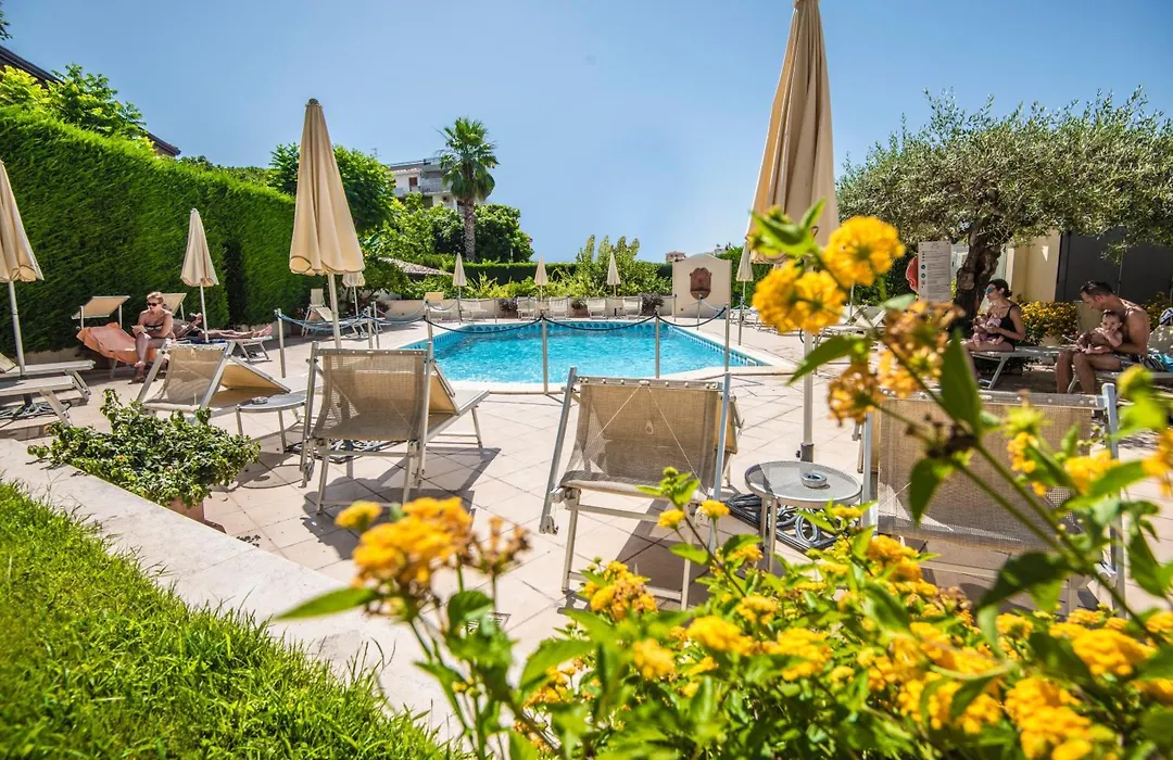 The hotel offers a beautifully landscaped garden with a pool and solarium featuring lounge chairs and umbrellas, ideal for relaxation. It is also conveniently located 300 meters from the beach in Giardini Naxos and near shops and bars.