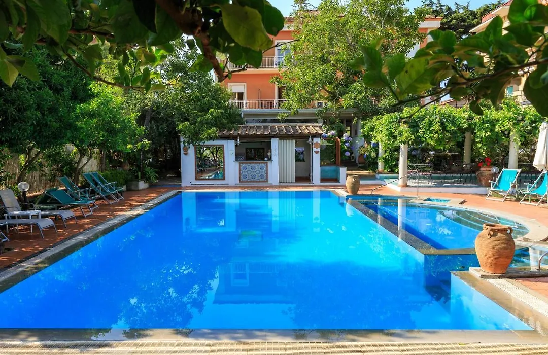 The hotel offers a continental or buffet breakfast, and nearby dining options include Ristorante Don Alfonso 1890 and Bistrot La Spunta, both within 1 km. A bar is available for snacks and drinks in the garden.